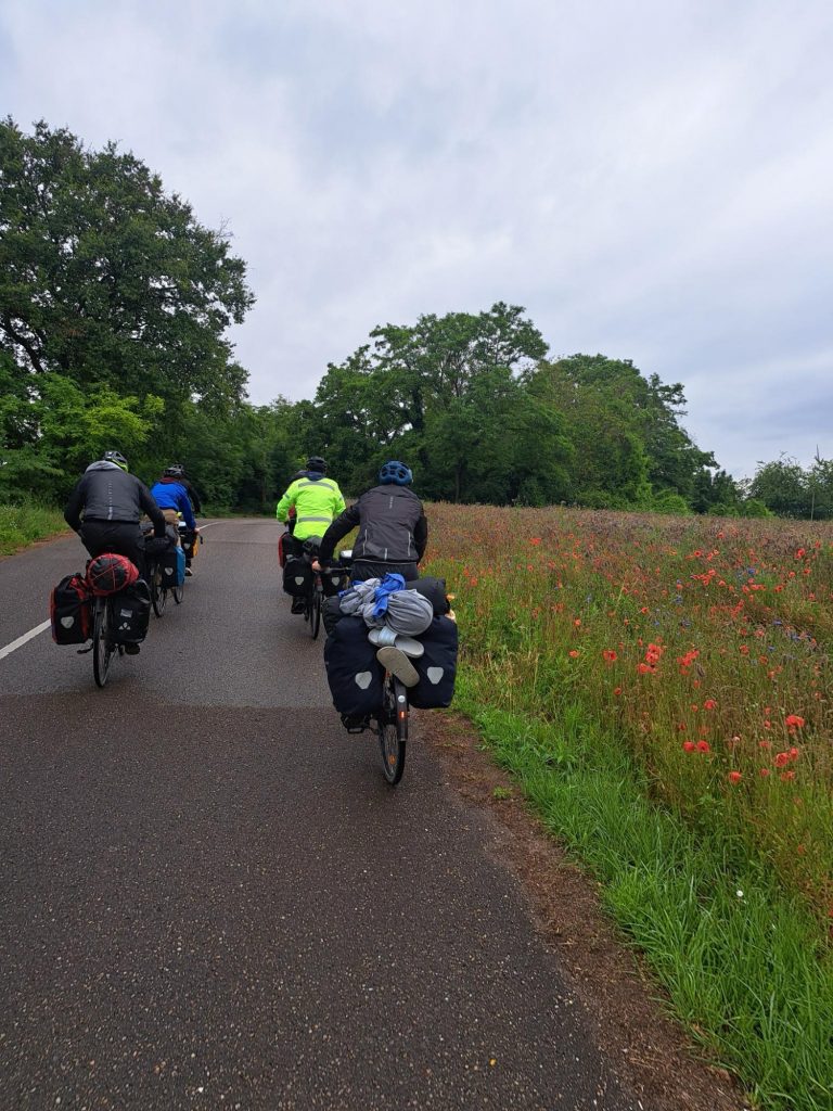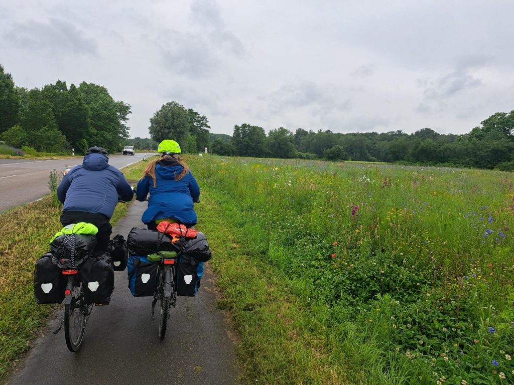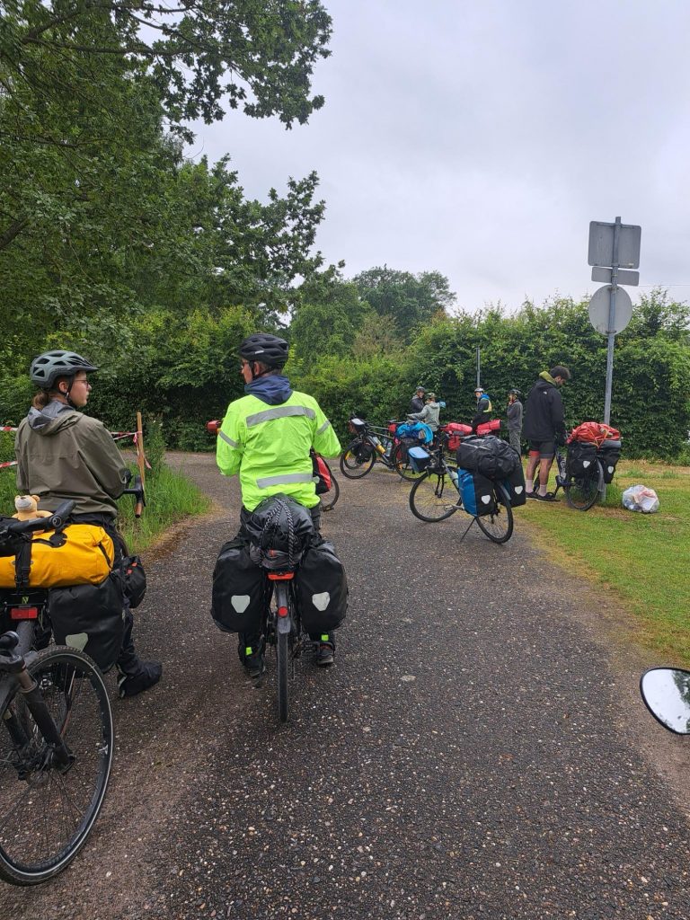 Der Tag begann regnerisch. So schnell es für alle eben möglich war packten wir die noch nassen Zelte ein, um dann, diesmal mit Erdmut Bauer an der Spitze, die nächsten 60 km zu bewältigen.