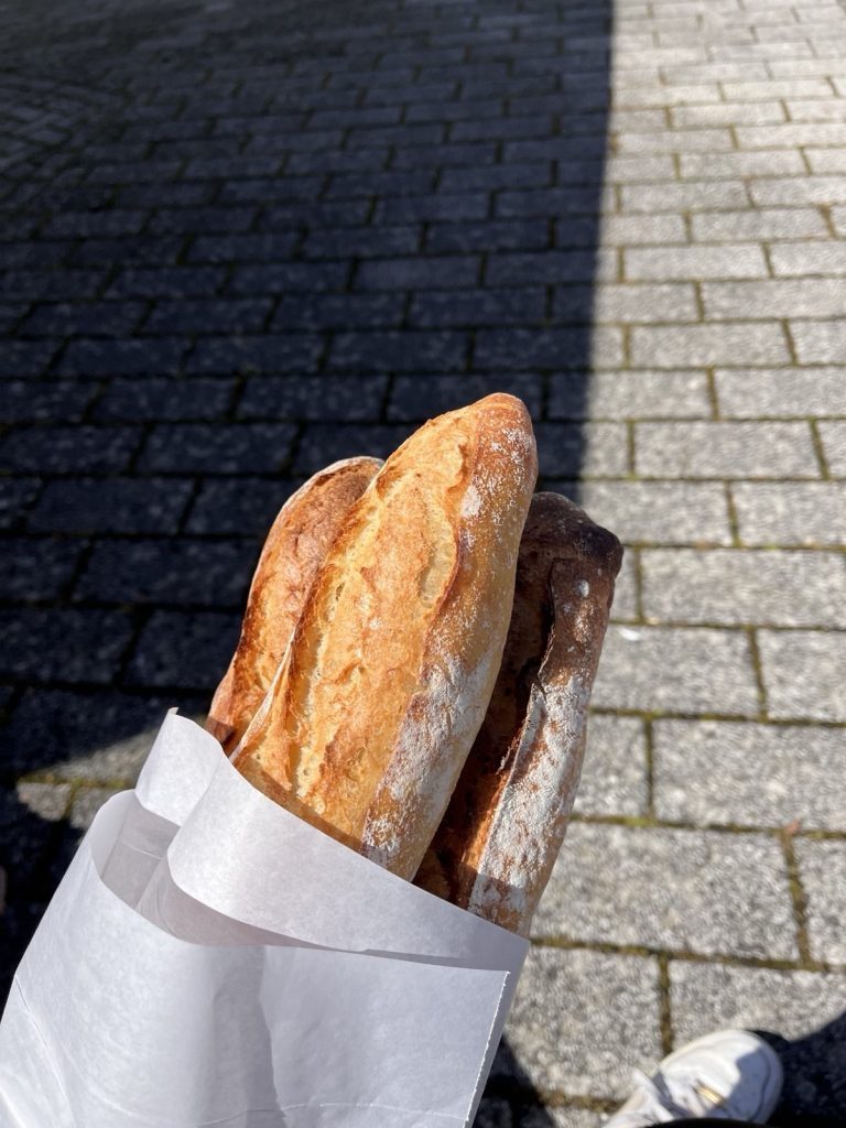 Wir sind dann auch im Regen losgefahren und haben nach einer Weile bei einer Bäckerei gehalten und gefrühstückt.