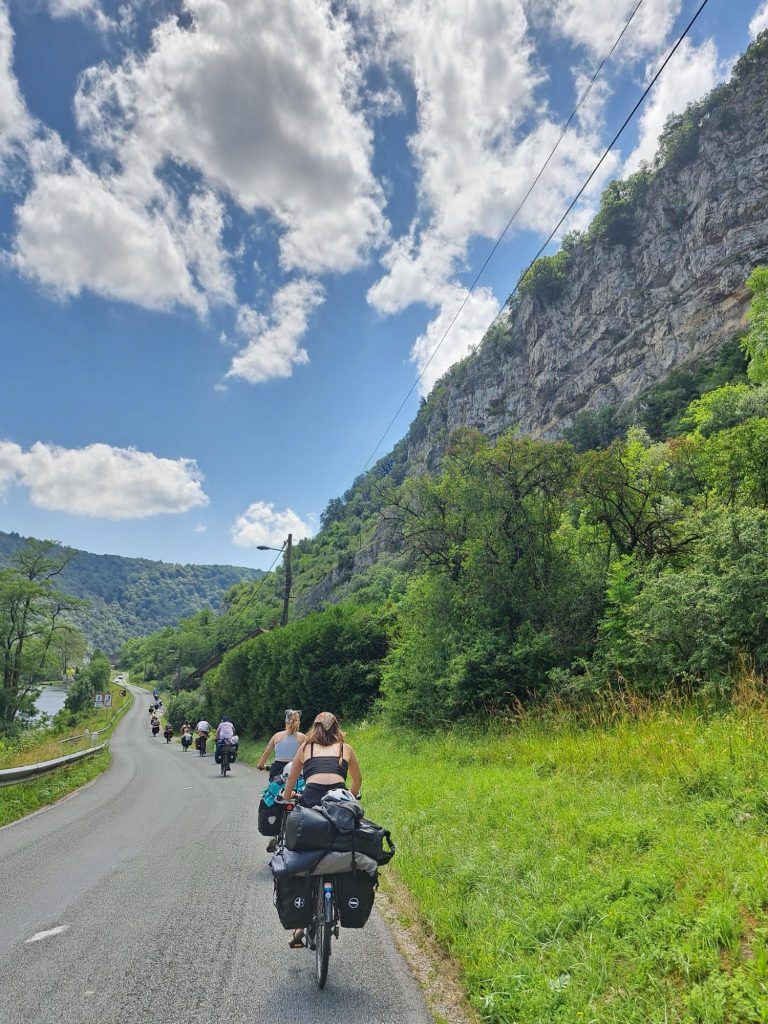 Nach einem kurzen, heftigen Gewitter am frühen Morgen hieß es 9:00 Uhr ab auf’s Rad. In Mitten wunderschönen Natur, den schroffen Felsen und dem Fluss an unserer Seite legten wir 65 Kilometer zurück.