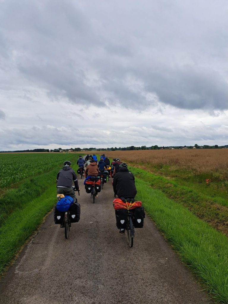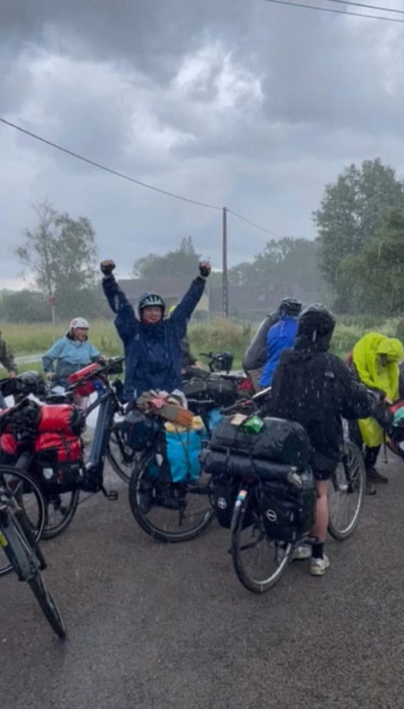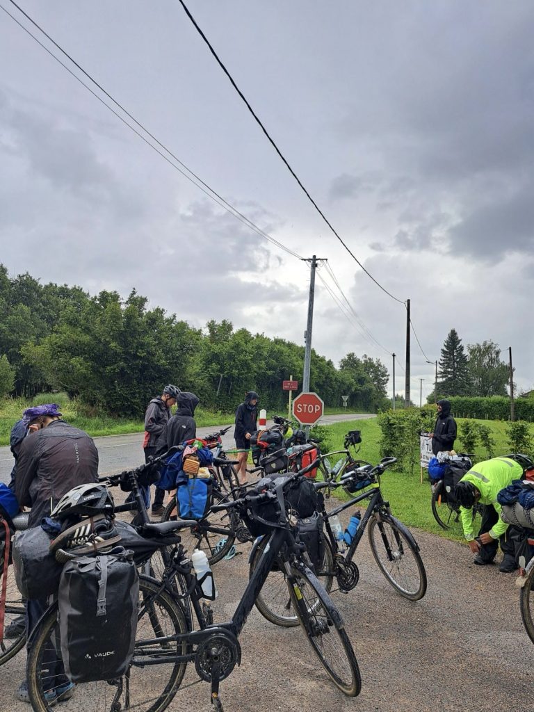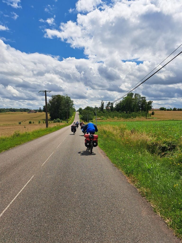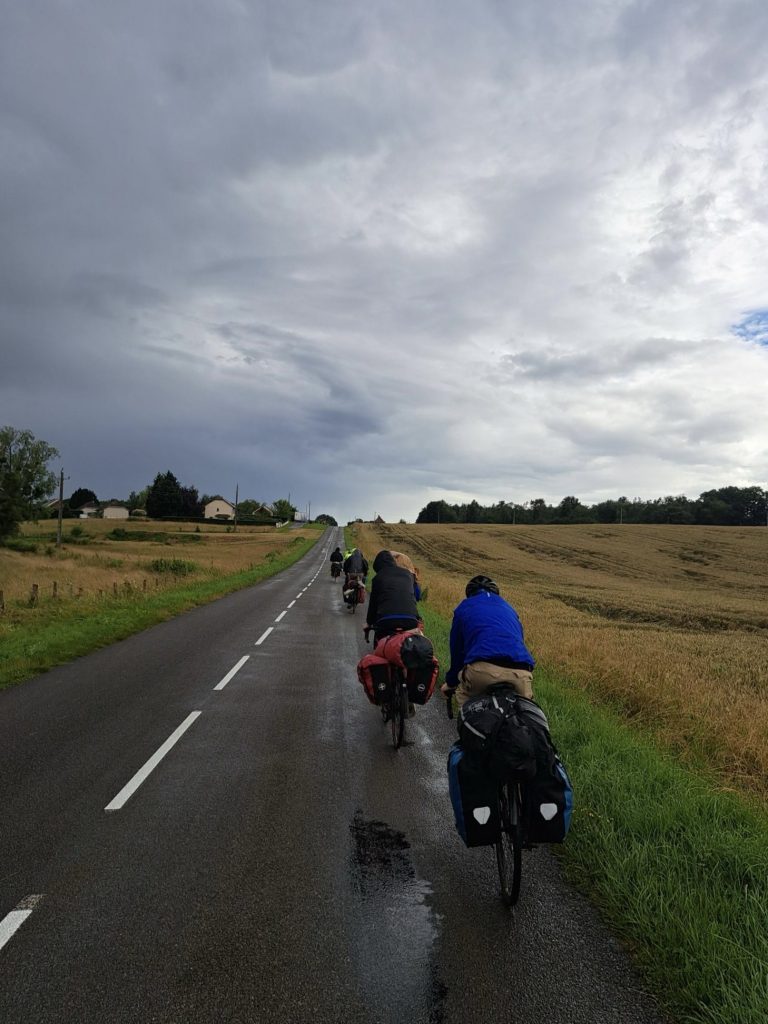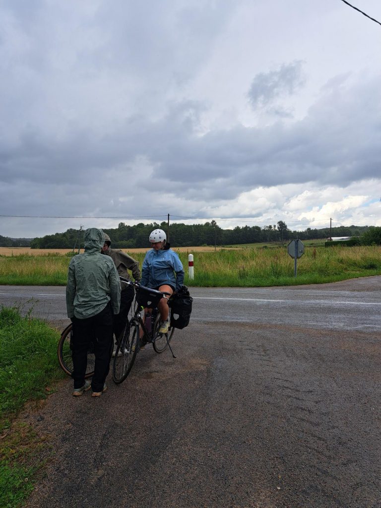 Nach einem etwas verregneten Pausentag ging es nun wider auf’s Rad. Anfangs wurden wir noch vom Regen verschont, doch nach kurzer Zeit regnete es sich ein und es wollte auch erstmal nicht mehr aufhören. Das einzige was wir heute im trockenen erlebt haben, war eine sonnige Mittagspause auf einem schönen Kirchplatz und am Abend das aufbauen der Zelte auf einem kleinen, privaten Campingplatz irgendwo im Nirgendwo.