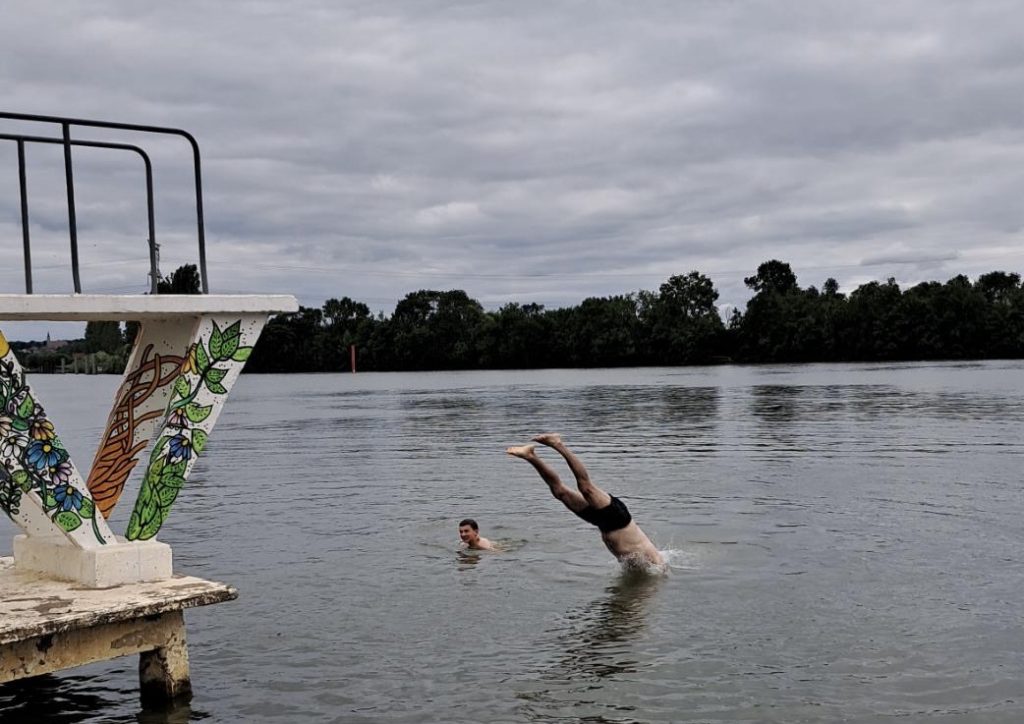 So fuhren wir gut gelaunt einen sehr schönen Campingplatz in Thoissey an. Dort angekommen wurde direkt der anliegende Fluss zum Baden genutzt, da sich die Sonnen nach länger Zeit endlich mal wieder zeigte.