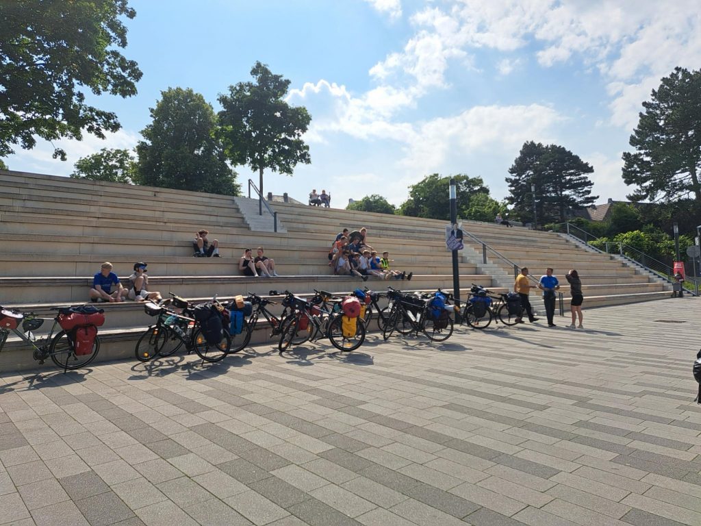 Bei bestem Wetter ging es heute endlich an den Rhein. Unsere heutige Etappe musste ein paar Mal wegen Überschwemmungen des Rheins geändert werden. Außerdem durchfuhren wir die Großstädte Düsseldorf und Köln. Das war phasenweise eine besondere Herausforderung, aber wir haben es als Kolonne super gemeistert. Dafür mussten wir uns natürlich auch belohnen. Mit Blick auf den Rhein und einem Eis in der Hand genossen wir die Stille und das Rauschen des Wassers. Besonders hervorzuheben ist, dass wir den heutigen Tag erstmalig ohne Panne geschafft haben.