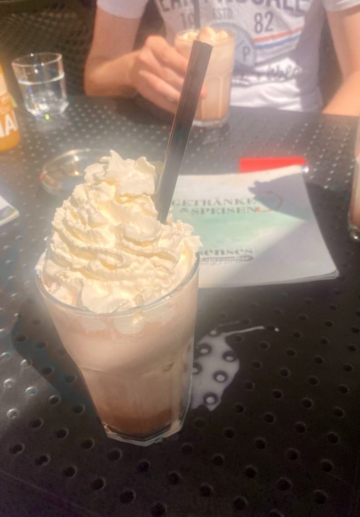 Das Highlight des Tages war der Besuch eines örtlichen Cafés. Ich habe mir einen Schoko-Shake mit einer riesigen Portion Sahne bestellt. Den werde ich morgen abstrampeln 😉