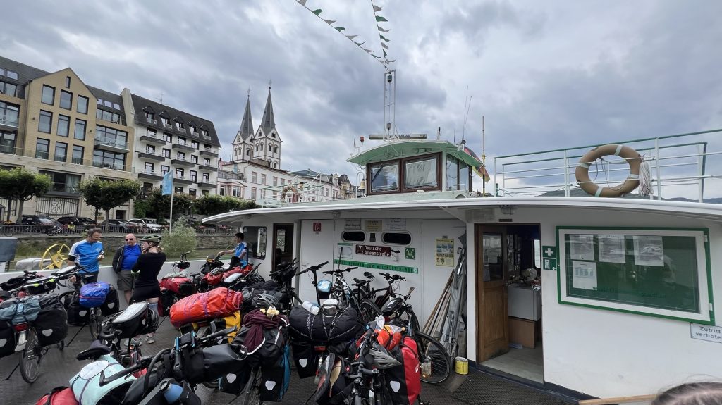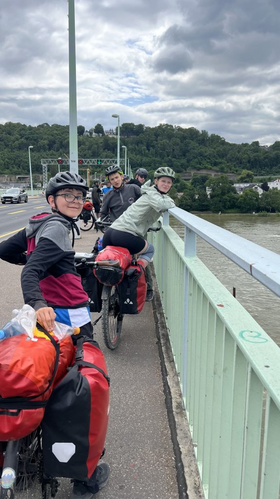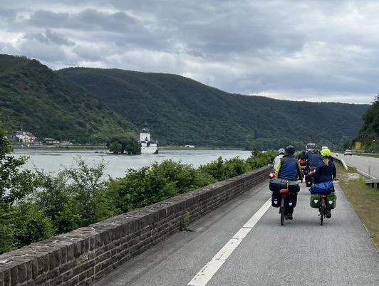 Der heutige Tag startete mit einer kurzen Radtour zum Deutschen Eck. Dort wurde erst einmal ausgiebig gefrühstückt. Vor uns lagen 80 km durch das idyllische Mittelrheintal vorbei an Schlössern, Burgen und wunderschönen Fachwerkhäusern. Rechts und links von uns ragten die felsigen Berge hoch in den Himmel, welche einen Teil der Gruppe zu einer Bergetappe einluden. Nach ein paar anstrengenden Höhenmetern erreichten sie die Lorelei und genossen von dort aus die herrliche Aussicht auf den Rhein und die am hang liegenden Weinfelder.
